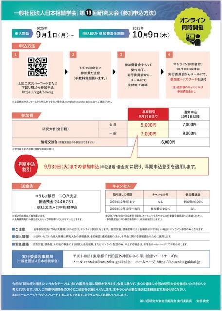 | 費用 | 相続学会会員 2,000円 ビジター 3,000円 |